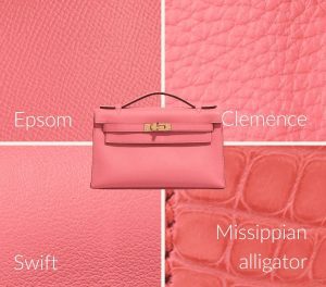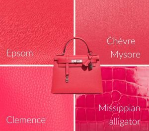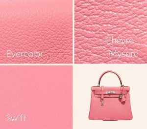 You’ll mostly find it in Epsom leather, sometimes in Chevre, but it really shines in exotic skins. If you want that classic pink statement, 5P is the one!