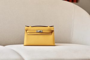 Many collectors also compare the Kelly Pochette vs Mini Kelly — the Pochette has a slightly wider profile and no strap, while the Mini Kelly has a crossbody option.