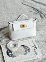Includes ribbon, care booklet, dust bag, paper bag and box.