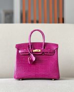 Birkin 25 Shiny Alligator Crocodile Rose Sheherazade Gold Hardware J5