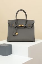 Includes lock, two keys, clochette, clochette dust bag, ribbon, care booklet, raincoat, felt protector, dust bag, and box.