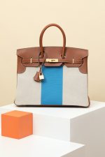 Birkin HSS 35 Barenia and Canvas Gold(37) Gold Hardware