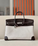 Birkin HSS 40 Barenia and Canvas in Noir(89) Palladium hardware