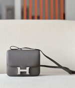 The bag features a long shoulder strap , including an H buckle on the flap.