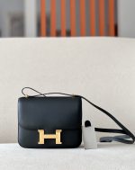 “The bag features a long shoulder strap , including an H buckle on the flap.