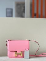 The bag features a long shoulder strap , including an H buckle on the flap.