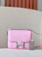 The bag features a long shoulder strap , including an H buckle on the flap.