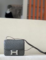 “The bag features a long shoulder strap , including an H buckle on the flap.