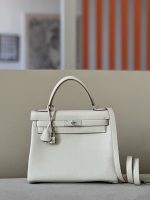Includes lock, two keys, clochette, clochette dust bag, ribbon, care booklet, raincoat, felt protector, dust bag, and box .