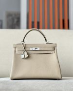 Includes lock, two keys, clochette, clochette dust bag, ribbon, care booklet, raincoat, felt protector, dust bag, and box .