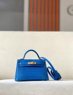 Kelly Mini Alligator Bleu Izmir (7W) Gold Hardware