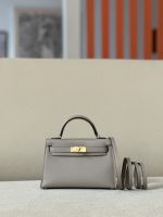 Kelly Mini Epsom Gris Asphalte (M8) Gold Hardware