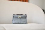 Kelly Pochette Ostrich Gris Asphalte (M8) Gold Hardware