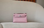Kelly Pochette Ostrich Rose Sakura (3Q) Palladium Hardware