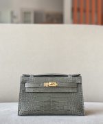 Kelly Pochette Alligator Gris Tourterelle (81) Palladium Hardware