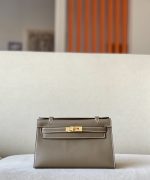 Kelly Pochette Swift Etoupe (18) Gold Hardware