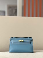 Kelly Pochette Swift New Bleu Jean (D2) Gold Hardware