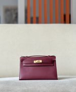 Kelly Pochette Swift Rouge H (55) Palladium Hardware