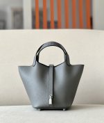 Picotin Lock 18 Clemence and Ostrich Gris Meyer(0L) Gold Hardware