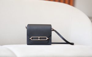 Includes ribbon, care booklet, dust bag, paper bag and box.
