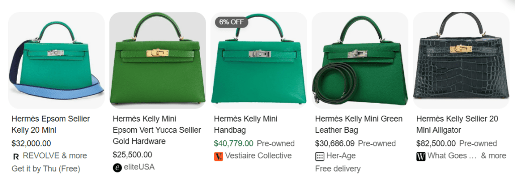 For example, a Kelly Mini in green on the secondhand market starts at around $25,000. And if it’s made with Alligator? That can go all the way up to $80,000.
